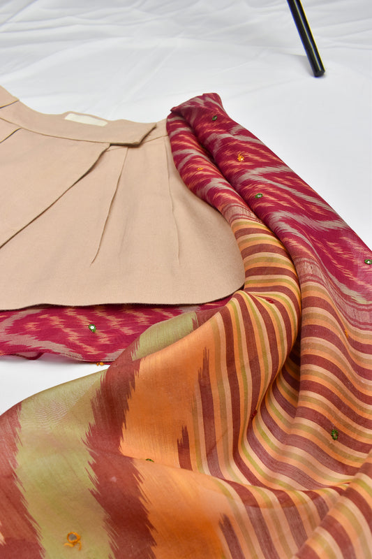 WITH IKKAT WEAVE COTTON SAREE (S)