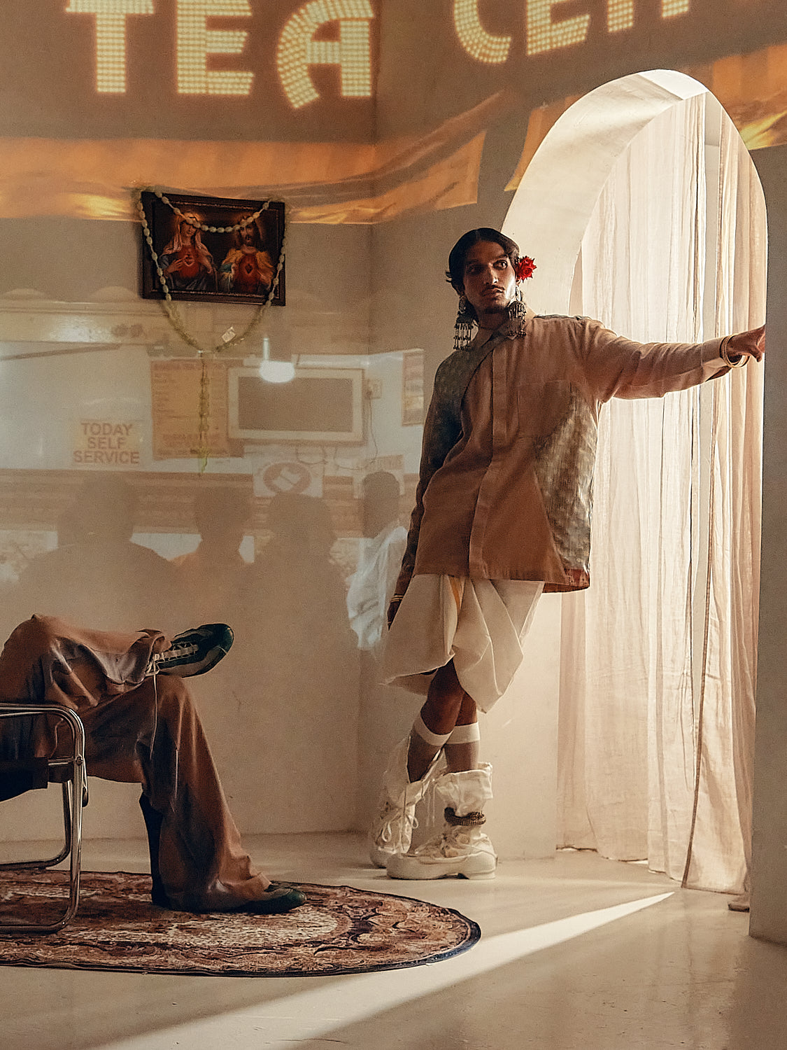 WITH BOTANICAL BLUE SILK SAREE (M)